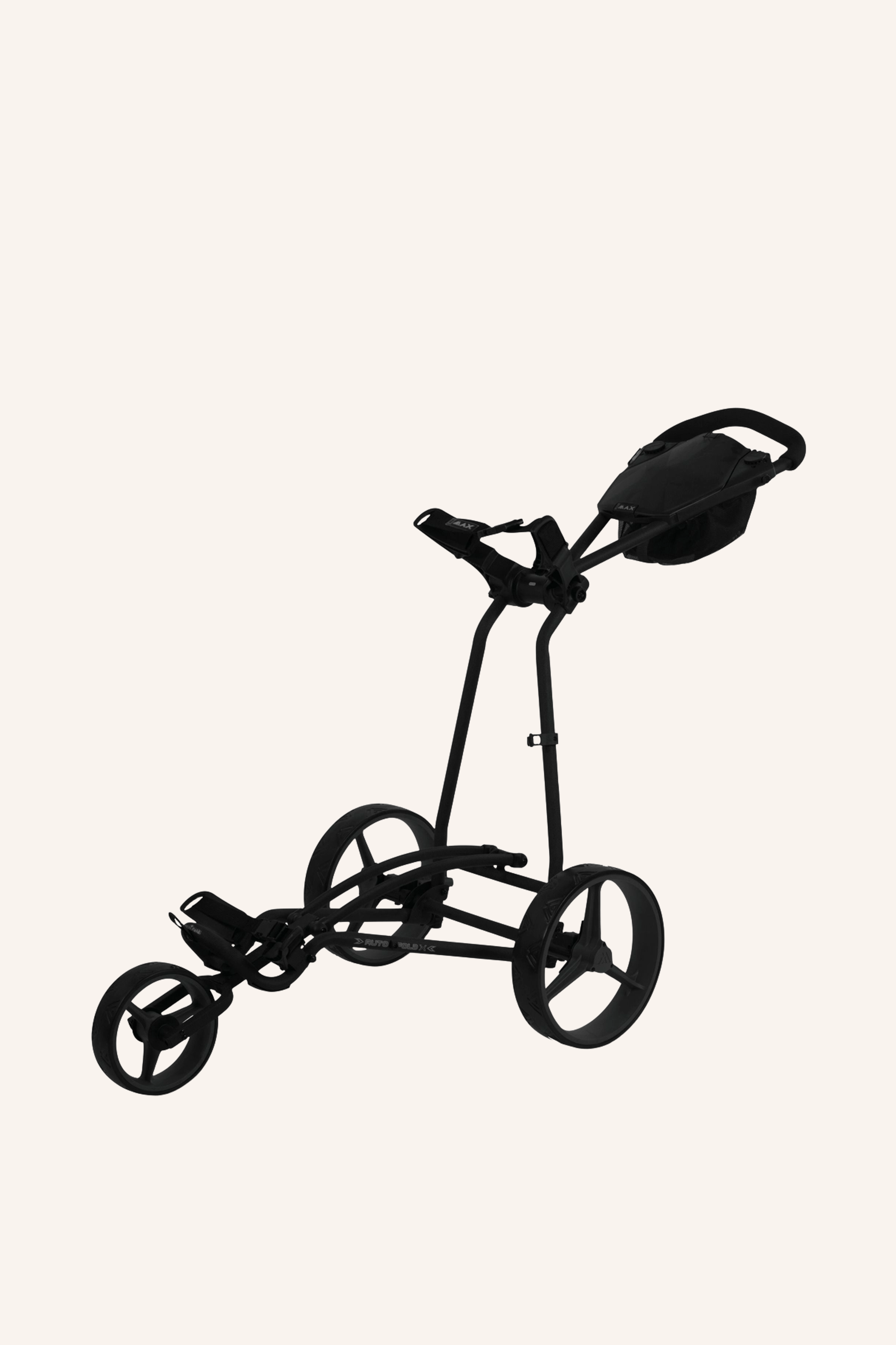 Manueller Trolley Autofold X von Big Max, Phantom-Farbe, zusammengeklappt und bereit für den Transport.