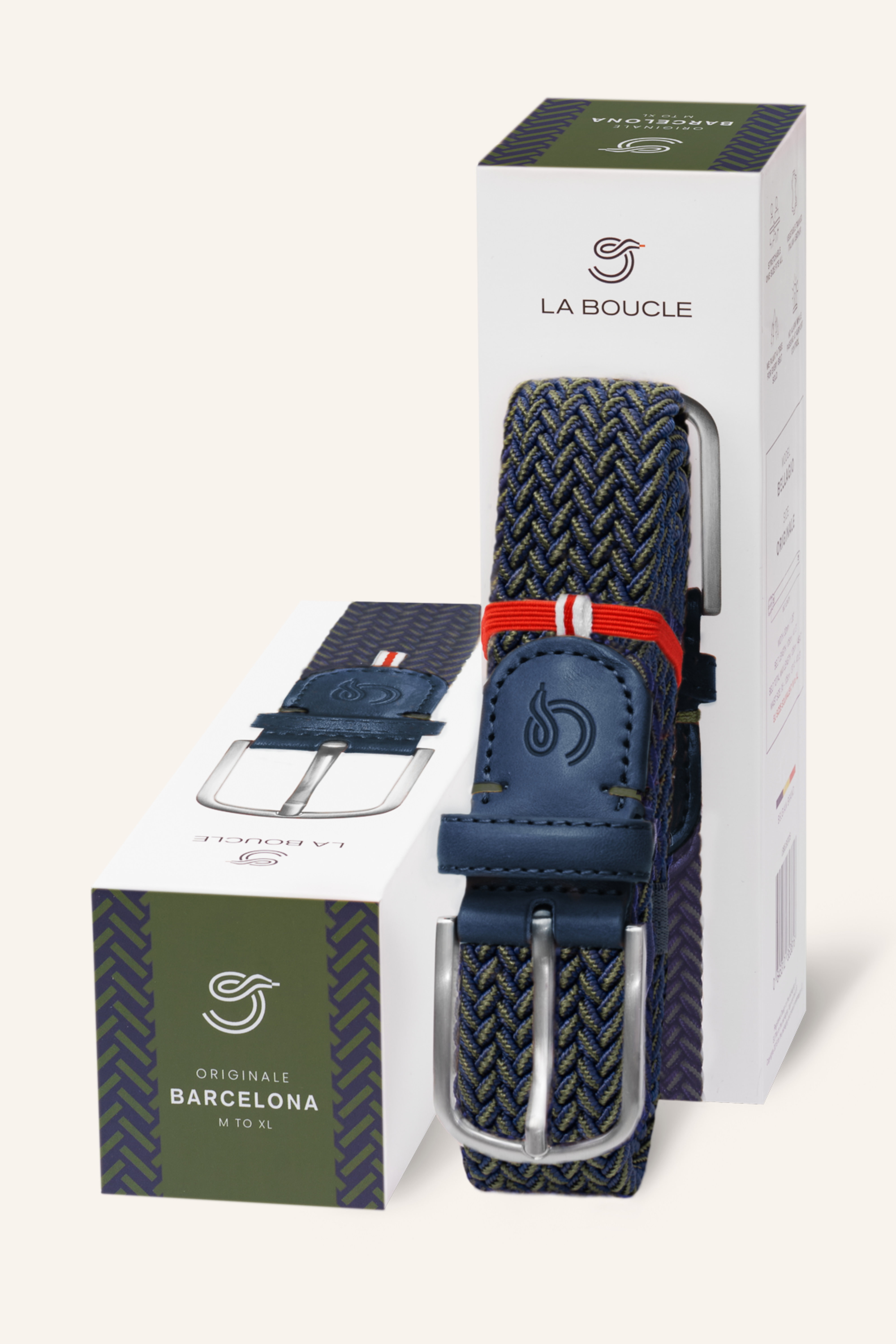 Der Barcelona Gürtel ist aus einem robusten, geflochtenen Textil gefertigt, das eine hohe Elastizität aufweist. Die Endstücke und die Gürtelschlaufe bestehen aus edlem, pflanzlich gegerbtem Leder, das für seine Haltbarkeit und natürliche Patina bekannt ist. Die stabile Schnalle aus Zamak ist nickelfrei und sorgt für eine sichere Befestigung. Mit einer Breite von 32 mm und verschiedenen Längenoptionen bietet dieser Gürtel eine optimale Passform für Taillenweiten von 85 cm bis 115 cm.