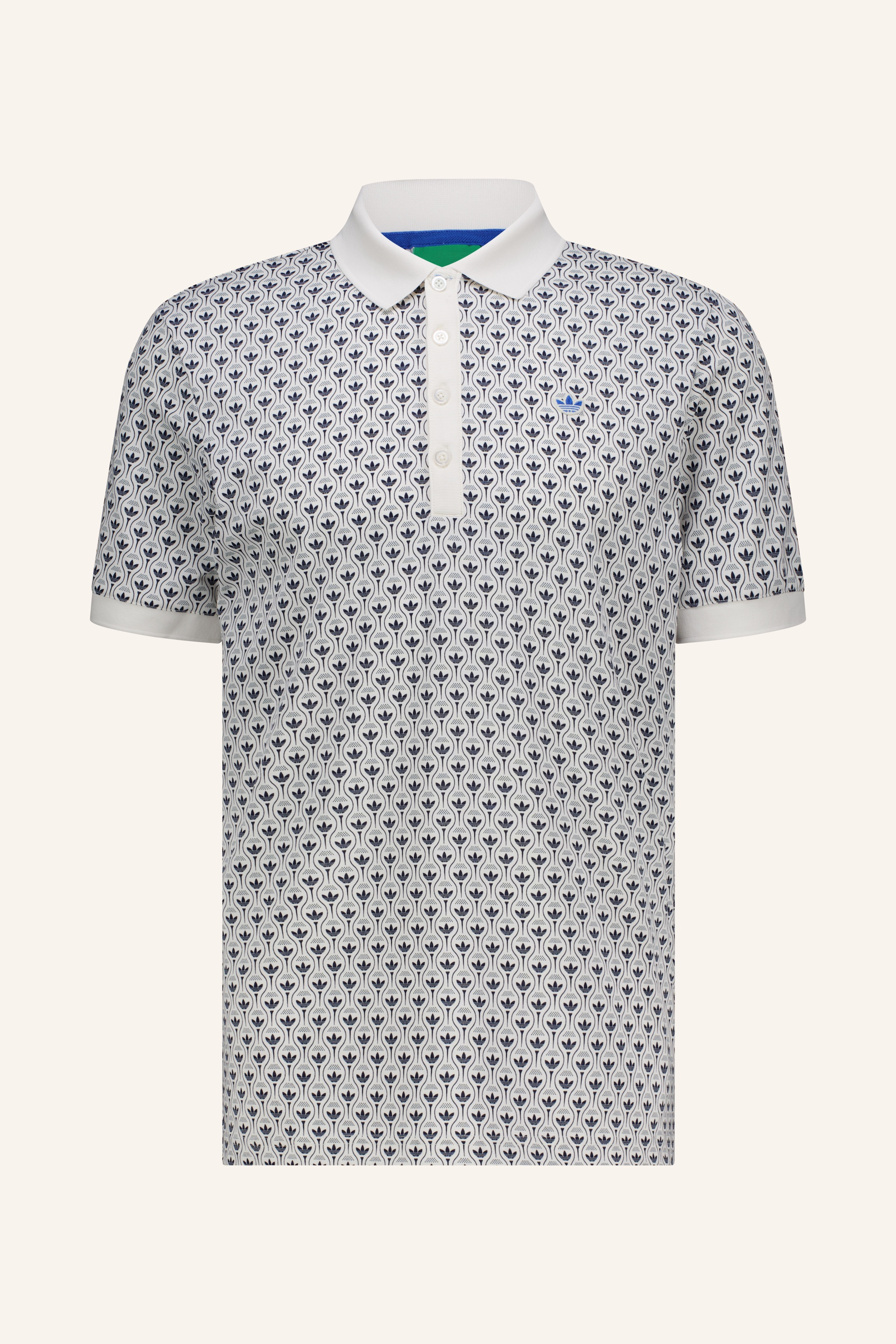 Das Polohemd ist mit einem auffälligen All-Over Trefoil Print versehen, der ihm einen einzigartigen und modernen Look verleiht.