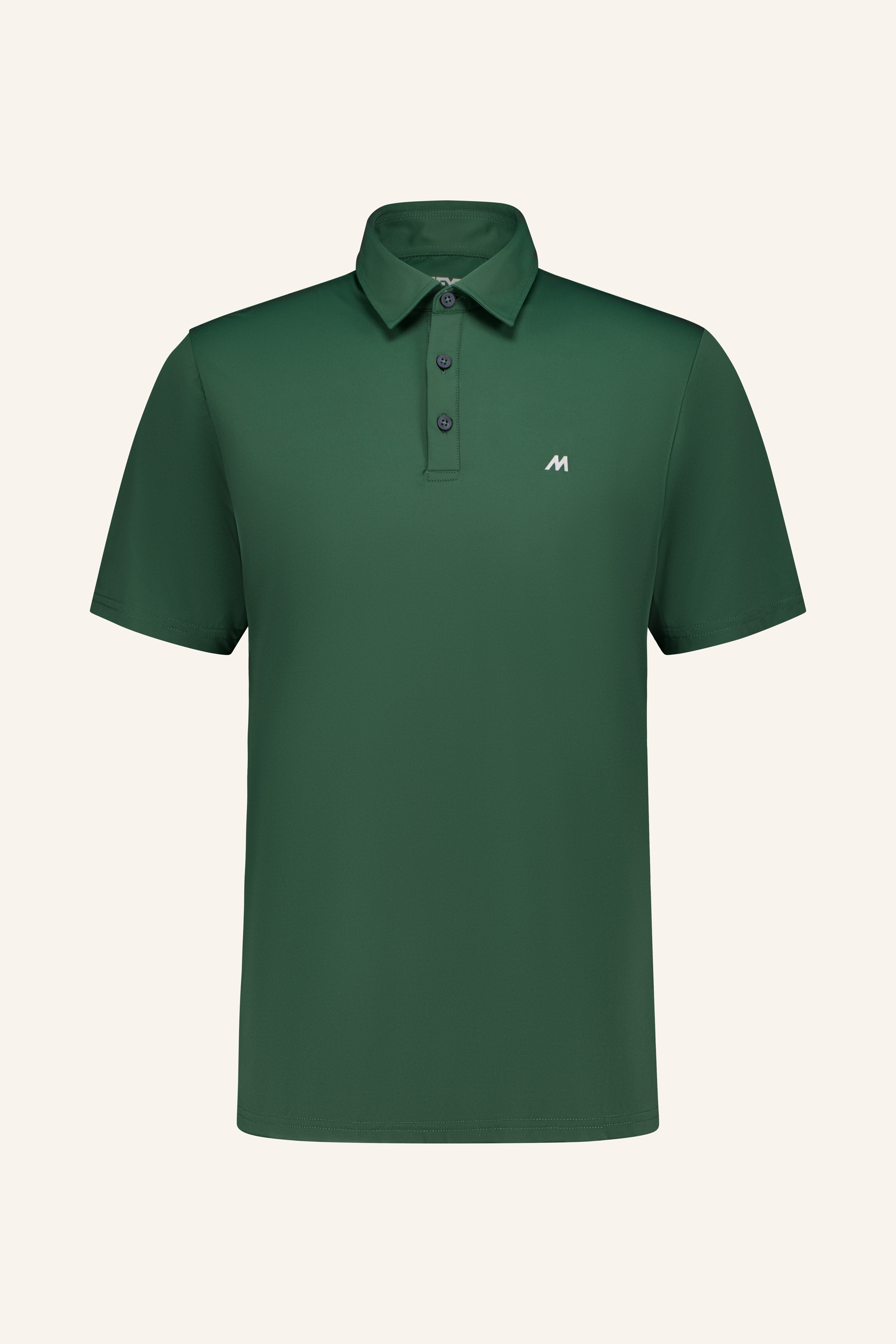 - Kragenschnitt: Polokragen mit drei Knöpfen