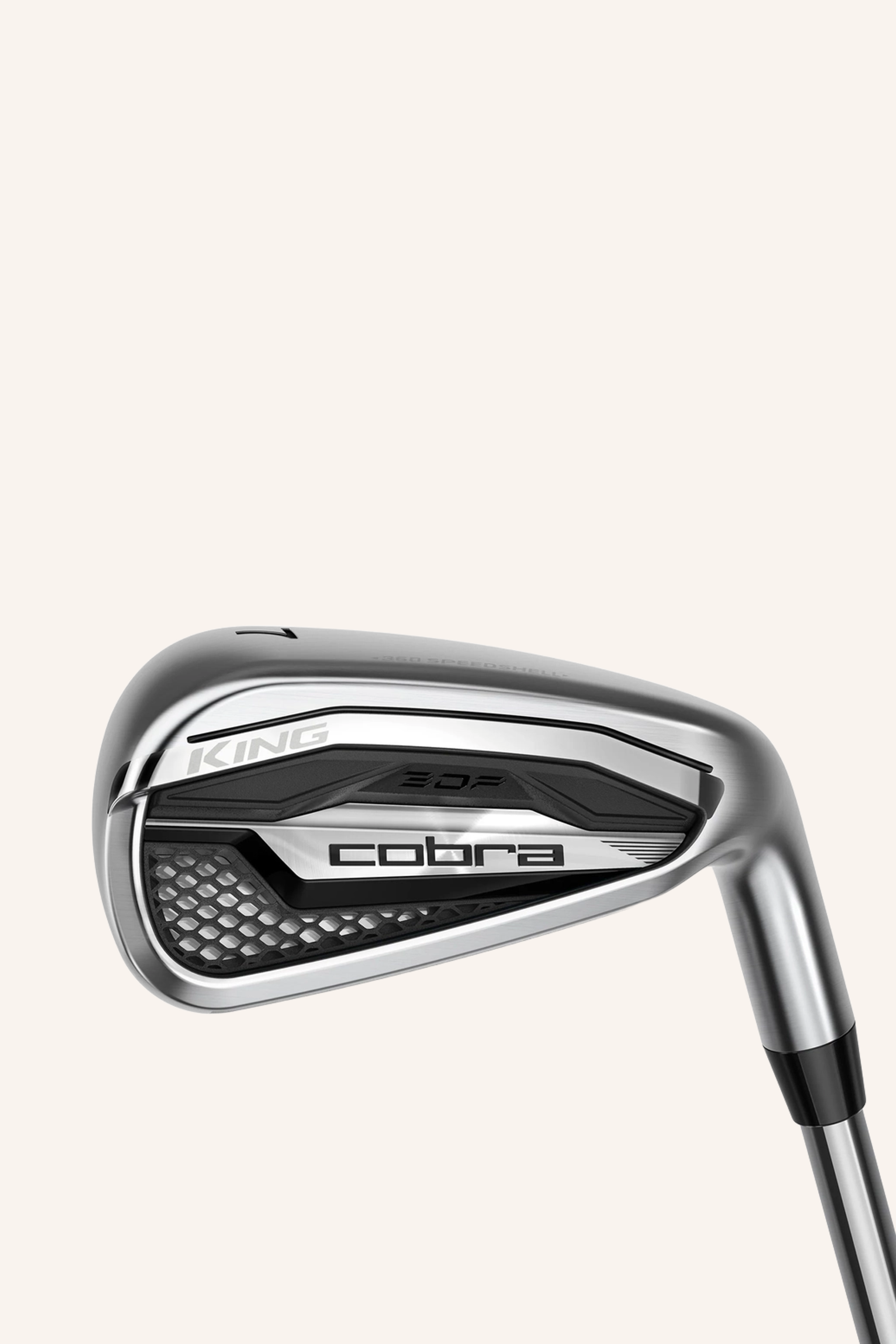 Der Cobra King SV (2026) Eisensatz kommt standardmäßig mit einem Graphitschaft in Regular Flex. Eine Anpassung der Schlägerlänge und des Liewinkels ist im Rahmen einer Fittingoption möglich.